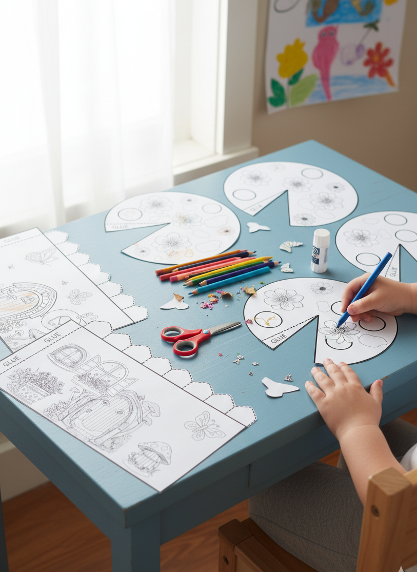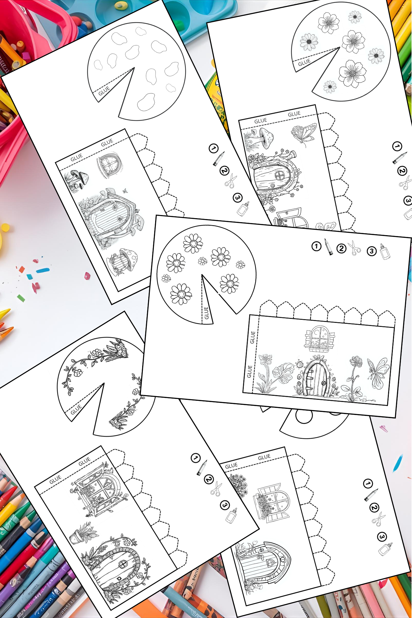 Fun and creative! Our set includes 5 easy-to-make fairy paper houses for kids. Little artists can color, cut, and glue to create adorable tiny fairy homes. Perfect for hours of imaginative play and decoration, these fairy houses are a magical craft project that kids will love. Spark their creativity and bring fairy tales to life with this fun DIY kit!